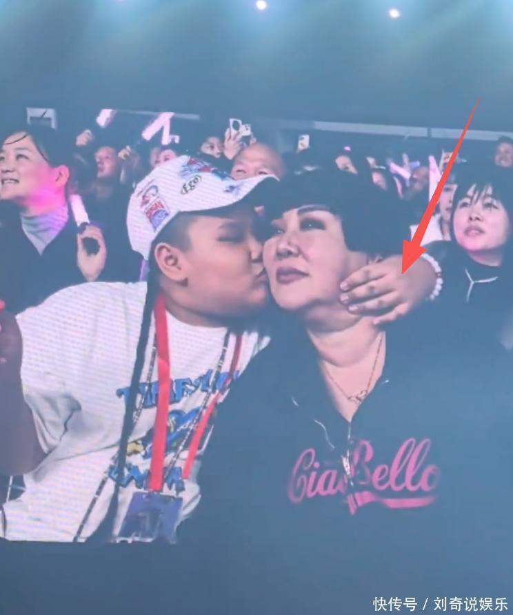 当现场画面扫到郭汾阳时,只见他一手搂着妈妈的脖子,然后就直接撅嘴亲到了王慧的脸颊。